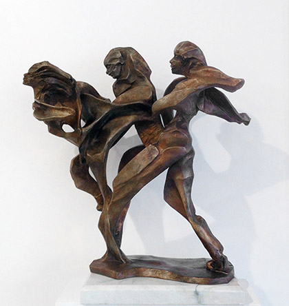 CHEESE Andrew Cheese was born in Odstock, Hampshire. He attended Ravensbourne College of Art where he gained a B.A. Hons Degree in Sculpture. "I use a broad range of materials, including stone, resin, wood, steel and plaster. Most of my pieces are based around the human figure, or drawn from nature. These are subjects I find intensely interesting, as the varieties of form and texture are infinite. I often use the suggestion of movement in my work, as I feel that this gives the sculpture more 'life' and helps to engage the viewer. I have studied the movement of everything from dancers to kinetic machines, and used them to give me inspiration."The most recent sculpture he has produced is called ‘Movement’, and has a feeling of fluid motion and a strong use of line and negative spaces to create tension within the figures.