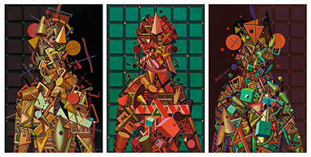 Each of his vast canvases is composed of complex structuring and juxtapositional interweaving of clearly defined objects both animate and inanimate. They represent or re-structure the elements of experience not as a continuous reality but as they appear in inner vision.