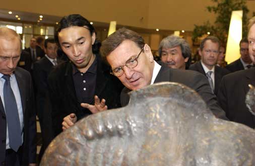 They are sculptures of shamans, nomads and warriors by an artist from a Siberian village so remote that a visitor would have to fly six hours east of Moscow to reach it. They have recently become very popular among the Russian elite. So popular, in fact, that Mr. Putin, speaking German, took Chancellor Gerhard Schröder on a visit to the artist's work during Mr. Schröder's visit to Russia last fall.