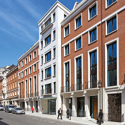http://www.albionstone.com/portland-stone-projects/9-15-sackville-street The new £14 million building comprises approximately 40,000 sq ft of office, two - 2 bedroom flats and one-3 bedroom flat. Sackville Street contains many well preserved, Listed Georgian buildings and the design of the new building uses the same traditional materials of brick, Portland Stone and lead, to reflect their proportions and rhythm in a contemporary manner. The wide frontage has been subdivided into five bays to reinforce the vertical rhythm of the streetscape and a prominent cornice line introduced below the mansard roof storeys to reduce the perceived mass of the additional height. Albion Stone supplied 60m ³ of Portland Jordans Basebed for this development.