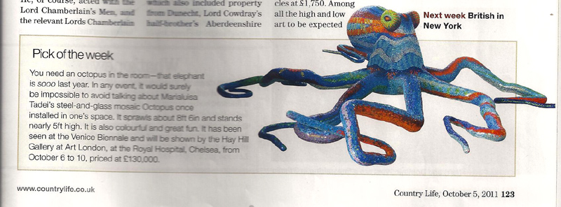 Among the works are 39ft installation made from spray paint and tape by hip French street artist L'Atlas, and an octopus made from glass mosaics by former Venice Biennale exhibitor Marialuisa Tadei. Standing guard by entrance is a 7ft sculpture of the Minotaur.
