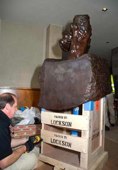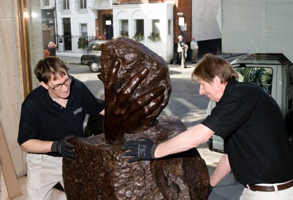Auguste Rodin’s ‘Hand of God’ moved to the Time + Life Building at No.1 Bruton Street, Mayfair by Lockson Shipping. The ‘Hand of God’ is one from a collection of posthumous production works cast from the foundry plasters and available from the Hay Hill Gallery, 23 Cork Street, Mayfair W1S 3NJ, Tel: 020 7734 7010, www.hayhill.com