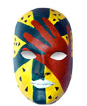 Masibambane School is a school in the poor township of Orange Farm 50 km south of Johannesburg that has been built and supported by the charity Education Africa. This mask completed by the children of this school represents the beauty and difficulties of the life they lead. This mask will not be available on eBay.