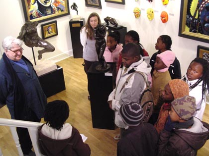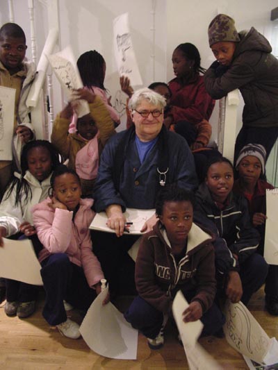 John Speirs with the children from the South African school (31 March 2009)