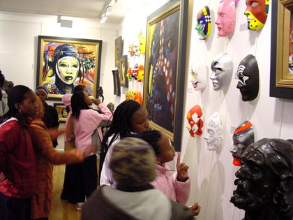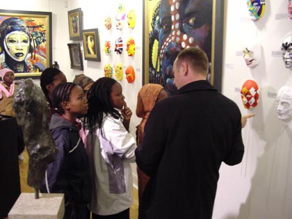 The masks are exhibited alongside 'Faces of Africa' an exhibition of works inspired by images of the African childhood of John Spiers. 'African colour flooded my eyes whilst African music assaulted my senses. These paintings are the result.' A percentage of sales from 'Faces of Africa' from 26th March until 5th April will be donated to Education Africa.