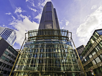 Tower 42, according to Wikipedia, is the third-tallest skyscraper in the City of London and the eighth tallest in Greater London. Its original name was the National Westminster Tower, having been built to house the National Westminster Bank's international division. Seen from above, the shape of the tower resembles that of the NatWest logo (three chevrons in a hexagonal arrangement).