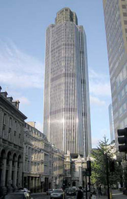 The tower, designed by Richard Seifert and engineered by Pell Frischmann, is located at 25 Old Broad Street. It was built by John Mowlem & Co between 1971 and 1980, first occupied in 1980, and formally opened on 11 June 1981 by Queen Elizabeth II.