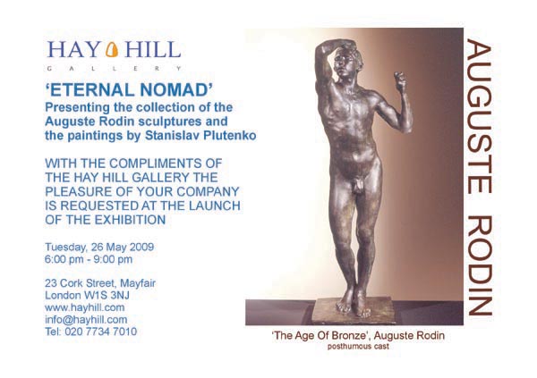 ‘Eternal Nomad’, a solo show of the most recent work by internationally recognised Russian artist Stanislav Plutenko to be exhibited alongside seminal works by Auguste Rodin at the Hay Hill Gallery, 23 Cork Street from Monday 25th May until Saturday 27th June, 2009.