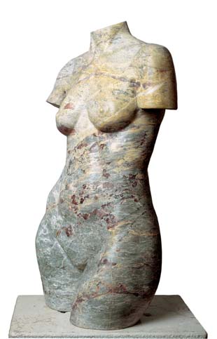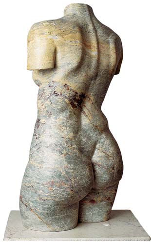 “Delilah could only be carved from marble because bronze could never convey the pristine smooth lines of feminine perfection. DELILAH was originally crafted in clay from a live model and I used this as a basis of form for the marble sculpture. It was a wonderful choice of marble, as I discovered when the wax polish brought out magic colours which were initially hidden in the original untouched stone.”