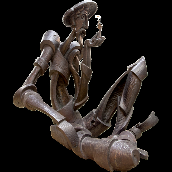 Critical outline on “Don Quixote” sculpture by Nikolai Silis: In the late 60s, Nikolai Silis began working on a new series of graphics. As a result, we got 14 pages of brilliant works dedicated to the famous hero of the Spanish writer Miguel de Cervantes, Don Quixote. The main creative goals for Silis were always works on the form, and Don Quixote felt just right for the plastic experiments. "I immediately imagined him all formed and twisted, made from thick sheets of metal" recalled the sculptor in his memoirs. (N. Silis, "Memoirs", Academic Publishing Centre "Nauka", Moscow, 2016, p.39.) Gradually, the hero of the graphic series began to acquire real outlines, first in clay, then in gypsum and finally, in his already familiar copper form. Although later, on the creative path of the sculptor, this image received many incarnations. In particular, Silis has a smaller bronze version of Don Quixote. This version was created specifically for the Moscow International Film Festival, which was later awarded to director Yuri Norshtein when he received the Tarkovsky Award for the cartoon "The Hedgehog in the Fog" in 1989. Don Quixote became the most distinguished character of the master. The image of Don Quixote, embodied by Nikolai Silis, combines monumentality with intimacy. He is largely out of the total number of his works, that usually gravitating toward generalization of forms, and yet, it is a veiled self-portrait of a master. Particular attention of Silis to the plastic interpretations in sculpture made significant changes in the world of art and included him in the lines of greatest artists of the twentieth century: Auguste Roden, Antonio Giacometti, Henry Moore, Vadim Sidur, Tony Cregg. Don Quixote became the main work of the sculptor, in which he was able to express his moral and ethical ideals, as well as the genius of the artist-creatorBiograpy: Since 1956 Nikolai Silis became a member of the Moscow Union of Artists. Since 1956 he had been taking an active part in all-Union, regional and international exhibitions, as well as in private Russian and foreign galleries. Many works of the sculptor were acquired and donated to state museums and private collections. Exhibitions: The first personal exhibition of Nikolai Silis took place at the Russian Academy of Arts in Moscow, near the metro station "Kropotkinskaya". The second - after 30 years, during «Perestroika», in 1987, in the gallery MOSKh on Vavilov Street, Moscow. The third solo exhibition was organized in 1992 in the Moscow Central House of Artists. 1994 - The Valentine Ryabov Gallery