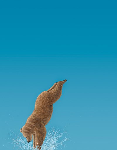 At first glance, Robert Bissell’s art suggests the struggles and triumphs of animals through a narrative painting style reminiscent of illustrative children’s books. But within Bissell’s work lies a more profound message. Familiar animals from our collective childhood, including bears and rabbits, are purposefully set in magical yet realistic landscapes to disarm viewers and draw them in. Once inside Bissell’s art, viewers discover that the quizzical, contemplative, menacing, or exultant animals actually represent us. Bissell then takes us on an unexpected journey, where in the end we realize that we are not separate from nature, but rather are part of it. Bissell’s initially disarming style is just the first layer of his intent, beyond which his art poses challenging and essential questions of what we are. His message is that we are ultimately part of nature, something we may have forgotten.