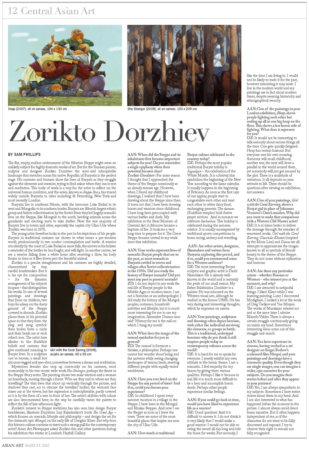 Introduction to the catalogue of works by Zorikto Dorzhiev. I am honored to write a short preface to the catalogue of works of the great Buryat[1] artist Zorikto. As I consider doing so, I see before me his amazing painting, a Mongolian “Mona Lisa!” He has an incredible eye and hand, seeing the human comedy with unflinching compassion, and depicting the Mona Lisa’s Mongolian incarnation with extraordinary realism, power and beauty. He brings his divine feminine character and her landscape totally to life, on his mirror wisdom surface. All his works are pervaded by his kindly but relentless sense of humor, actually a form of compassion, sensitivity to the life and suffering of others, to find the unexpected, the amusing side of the tragic. He seems to see the inconceivability of the human beings. He translates to us his Mongolians, mysterious and primal, the absolute of earthiness combined with sky-like divine vastness. His dominant subject is Mongolian individuals, men and women, human beings who live in one of the most difficult environments on earth, with the great help of the horse, the sheep, the yak, the cow, the goat. By focusing on this particular people, his people, he shows their universality. They conquered the greatest land empire in recorded history, ruthless with the violent, but benevolent to the cooperative. They then gradually became devoted to the Buddha’s teaching of gentleness and intelligence, and became open, peaceful and happy, and of course, vulnerable. After being preyed on for a century or so by Chinese traders and usurers, they lost everything to communist ideology and Russian and Chinese imperialisms. Now again, they arise in freedom and try to be themselves. Nowadays their women have taken charge, with 80% of the Ph.D.s, and many of the government jobs. The men are gingerly trying to go back out on the frozen steppes, move out of the Russian collectives and return to nomadic freedom. Zorikto’s paintings are a joy to look at. They are doorways into an artistic world, a world that makes our habitual world seem more vivid when we return. I am happy to visit them. All are invited to join.