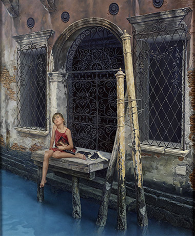 The artist describes his work as neoclassical; a return to the more traditional style of painting.  In recent years this painstakingly detailed technique has become rare, limited to highly skilled artists such as Fedotov. Markevich rejects the idea that his paintings are surrealist, considering instead that each contains a precisely formatted rational and philosophical grain. This is a talented artist who presents his vision through our perception of beauty- encouraging us to listen to the ideas behind the visual, inviting a more personal response.