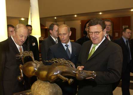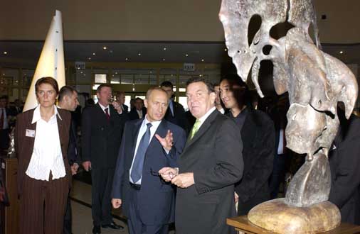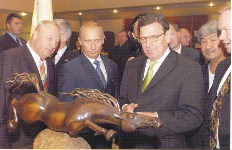 They are sculptures of shamans, nomads and warriors by an artist from a Siberian village so remote that a visitor would have to fly six hours east of Moscow to reach it. They have recently become very popular among the Russian elite. So popular, in fact, that Mr. Putin, speaking German, took Chancellor Gerhard Schröder on a visit to the artist's work during Mr. Schröder's visit to Russia last fall.
