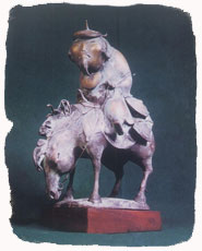 Most of Dashi's sculptures are incarnations of power — physical, sexual, spiritual. But not all. He depicts soldiers who are weary old men — squat, necklace, potbellied — rather than fearless warriors. "Horseman," for example, brings to mind the beleaguered Don Quixote.