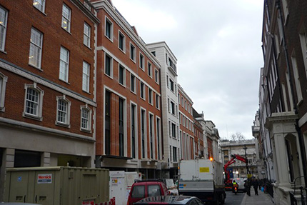http://www.albionstone.com/portland-stone-projects/9-15-sackville-street The new £14 million building comprises approximately 40,000 sq ft of office, two - 2 bedroom flats and one-3 bedroom flat. Sackville Street contains many well preserved, Listed Georgian buildings and the design of the new building uses the same traditional materials of brick, Portland Stone and lead, to reflect their proportions and rhythm in a contemporary manner. The wide frontage has been subdivided into five bays to reinforce the vertical rhythm of the streetscape and a prominent cornice line introduced below the mansard roof storeys to reduce the perceived mass of the additional height. Albion Stone supplied 60m ³ of Portland Jordans Basebed for this development.