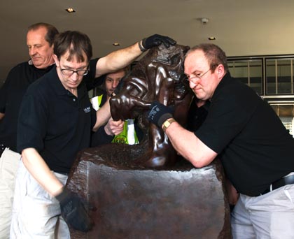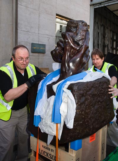 Auguste Rodin’s ‘Hand of God’ moved to the Time + Life Building at No.1 Bruton Street, Mayfair by Lockson Shipping. The ‘Hand of God’ is one from a collection of posthumous production works cast from the foundry plasters and available from the Hay Hill Gallery, 23 Cork Street, Mayfair W1S 3NJ, Tel: 020 7734 7010, www.hayhill.com