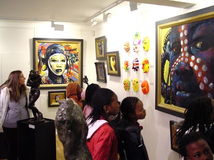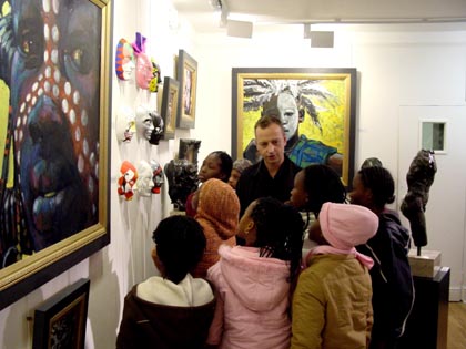The masks are exhibited alongside 'Faces of Africa' an exhibition of works inspired by images of the African childhood of John Spiers. 'African colour flooded my eyes whilst African music assaulted my senses. These paintings are the result.' A percentage of sales from 'Faces of Africa' from 26th March until 5th April will be donated to Education Africa.