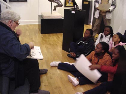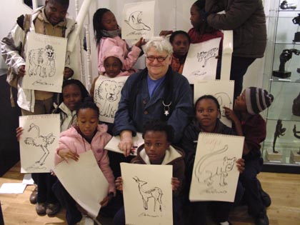 John Speirs with the children from the South African school (31 March 2009)