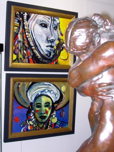 Vivid colours, bold strokes and a unique style. This collection of paintings inspired by John’s love of Africa, its peoples and the traditions of his continent, enters the soul of the viewer.  Abstract, painted for a wedding, wistful, warriors’, maidens’, all faces are drawn with a passion and verve rarely seen in such intimate portraits