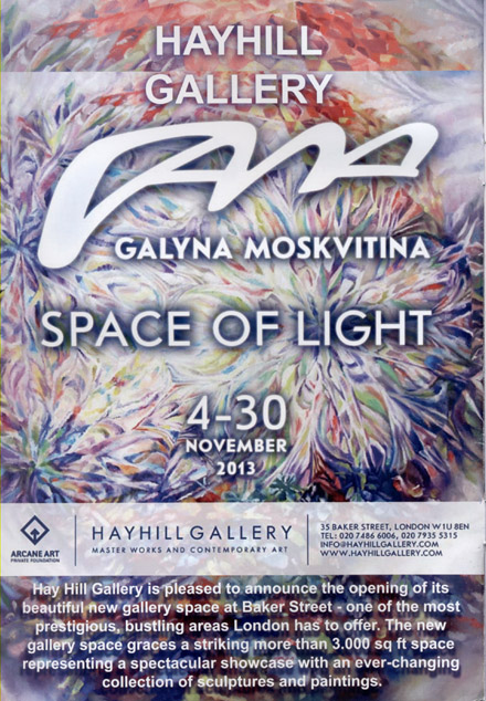 Space of Light, a solo exhibition of works by Ukrainian born artist Galyna Moskvitina will run until the end of November at the newly opened Hay Hill Gallery, 35 Baker Street, W1.