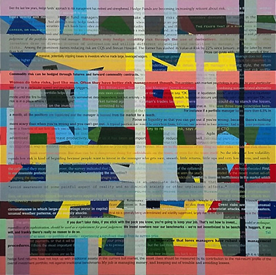 Art as a Derivative sources and records the opinions of key market participants, top financial journalists and leading academics – both contemporary and historic – as verbatim text. Each themed painting weaves the most incisive and revealing quotations into a form of narrative that somehow says so much more than the sum of its parts.