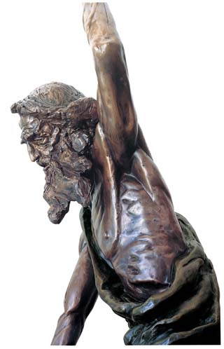 “Anatomically, my MOSES is old, very lean, starved, with ribs protruding, but still a very strong man with old but firm muscles and tendons attesting to his work as a shepherd. I have over-emphasised the veins on his arms and hands to combine strength and strain with pathos. I have tried to capture the mixture of sadness, shock, despair and rage in his weather-beaten face and eyes.”