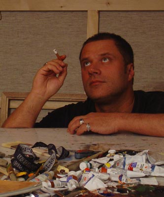He studied at the Academy of the National Economy named after M.Plekhanov and at the same time took private art lessons from the art masters of different work style. Since 1981 he worked as a show-window dresser, continuing to study painting in art studios. Since 1984 he has participated in exhibitions. In 1988 he worked with «Arbat 48», «Arbat 34», and «Mars» galleries. Since 1991 he has been a member of the Professional Graphic-Artists’ Union. In 1997 he was rewarded with Grand Prix of the «Golden Brush» exhibition. His work has been most recently seen in Britain in a one-man show at the Institute of Contemporary Arts (ICA) in London, 1996. TimeOut advertised the exhibition: