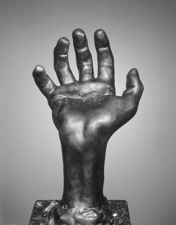 In this study of a hand, Rodin creates fortuitous ambiguities. We may interpret it in a number of ways and may see its form a complete and self contained or as a fragment. It is an excellent example of Rodin's idea that a detail or single motif may suggest a range of meanings.