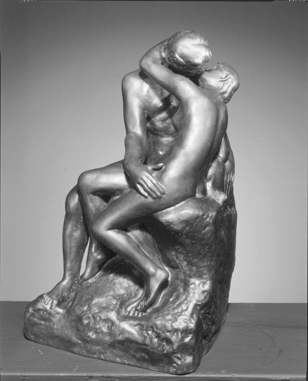 From Clodion in the eighteenth century and his followers such as Bartélémy-François Chardigny to Rodin’s contemporaries, the subject of the Kiss elicited frivolous, cloying responses. Alone among the sculptors of the period, Rodin restored to the subject dignity and monumentality. He also gave The Kiss historical weight by including the "slung-leg" motif, familiar from antiquity in images of erotic love. Of the sculptures celebrating physical love, The Kiss is the most perfect and most finely detailed.