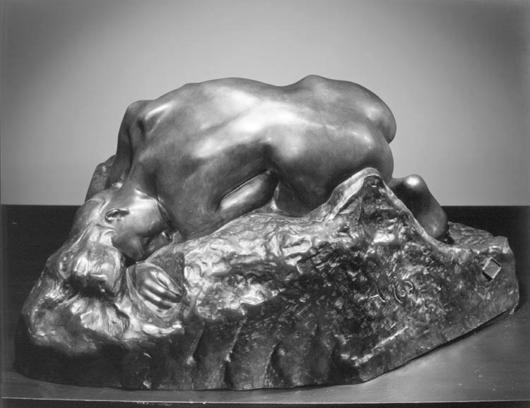 Rarely did Rodin exhibit a sculpture so immediately praised as The Danaid. Like Eternal Spring and The Kiss, this form is thoroughly traditional in subject and composition. Executed with great attention to form and to the continuity of unmarred curves, the work has a richness and mastery of finish that made its appeal universal. The Danaid represents one of the daughters of Danaus, king of Argos, who murdered their husbands on their wedding night and were condemned to fill sievelike vessels with water into eternity. For Rodin, the details of the narrative mattered less than the evocative qualities they contributed to his form. The German poet Rainer Maria Rilke, a great admirer of the sculptor, found himself immersed in the beauty and languid rhythm of the work: "The Danaid she who has cast herself down from her knees into her flowing hair. It is wonderful to pass about this marble slowly; the long, long way about the ich, unfolding curve of the back, to the face which loses itself in the stone as in a great weeping, to the hand which, like a final blossom, speaks gently one last time of life, deep within the eternal ice of the block."* The juxtaposition of extreme beauty and ultimate despair is in keeping with late romantic and symbolist themes. The subject recalls Henri Fantin-Latour’s voluptuous maidens, the temptresses of Gustave Moreau, and the women of Richard Wagner’s Rheingold. The Danaid has not been precisely dated. Rodin may have been at work on the figure as early as 1885. He did not specify his model, although a number of critics have suggested Camille Claudel. Visitors to the studio saw the work in finished form by 1888. After exhibiting a large plaster of the subject in the Salon of 1890, Rodin received a number of orders for versions in marble. A reduction in bronze was issued after 1900. * Rainer Maria Rilke, Rodin, trans. Robert Firmage (Salt Lake City, 1982), p. 46 |